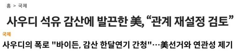 미국 입장은 대선이 얼마 안 남았고 연준이 원하는 연착륙 상황을 만들려면 유가가 안정되고 물가가 안정되어야 하므로 유가를 안정시켜야 하고.