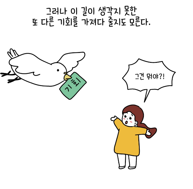 3. 이번 기회에서 떨어졌더라도, 그 회사에서 내가 할 일이 아니었을 수도 있다. 나에게 더 잘 맞는 일과 회사를 찾을 수 있는 기회가 된다.