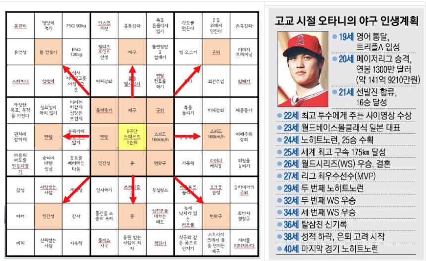 <오타니 쇼헤이가 고교시절 작성한 만다라트와 그의 야구 계획>