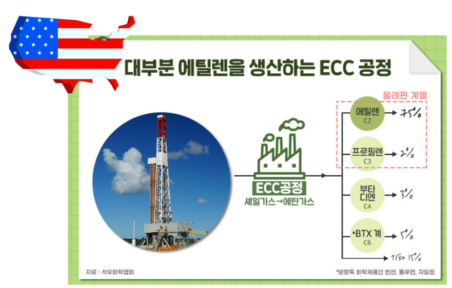미국도 저렴한 셰일가스로 석유화학제품들을 만들기 시작했습니다. NCC가 아닌 ECC로!