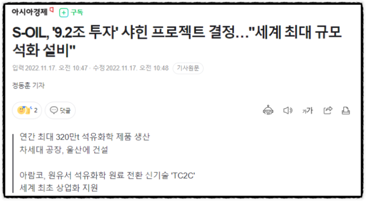 >>S-OIL 신규 프로젝트 긍정적 판단